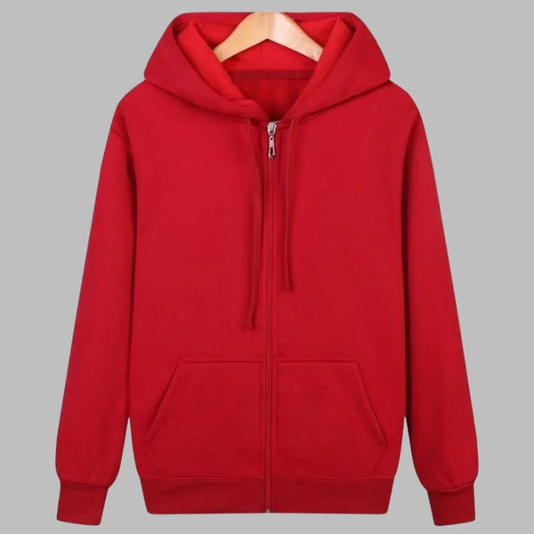 Heren zip-up hoodie - duurzame rode casual buitenjas voor elk seizoen