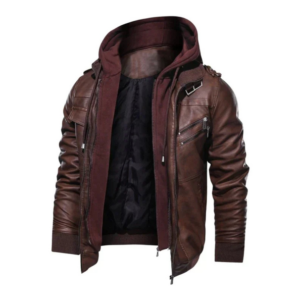 Heren leren jasje met gentegreerde hoodie - trendy buitenmode
