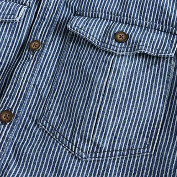 Dit gestreepte casual overhemd voor heren combineert vintage charme met hedendaagse inzichten, waardoor het een veelzijdige toevoeging aan je collectie is. Ontworpen met lange mouwen en twee voorzakken, biedt het zowel stijl als praktische bruikbaarheid voor dagelijks gebruik.