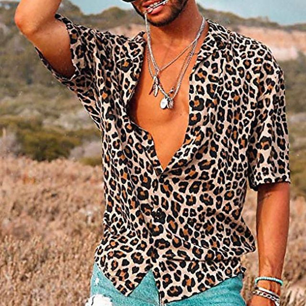 Heren casual overhemd met trendy luipaardprint - korte mouwen voor zomerse uitjes