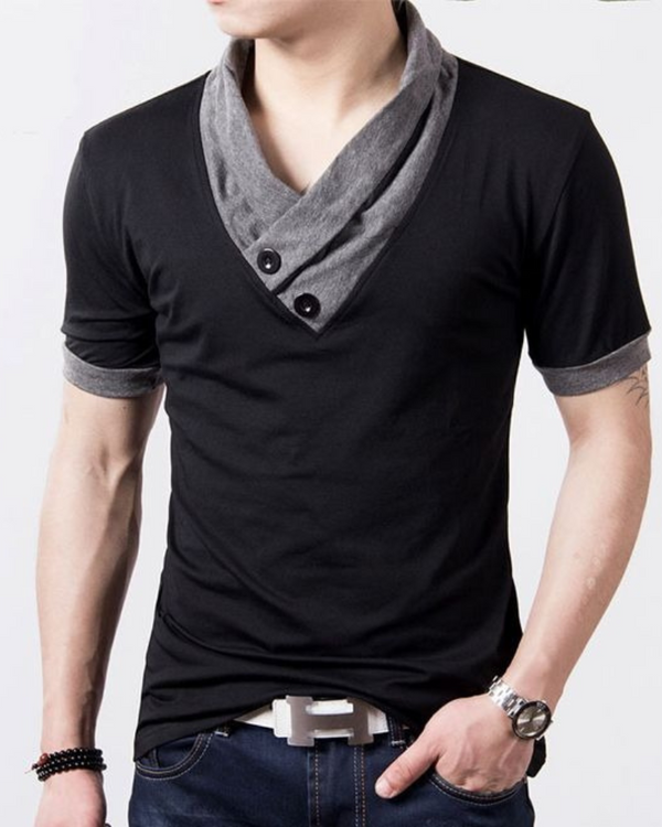Heren t-shirt met korte mouwen en unieke kraag - casual mode voor elke dag